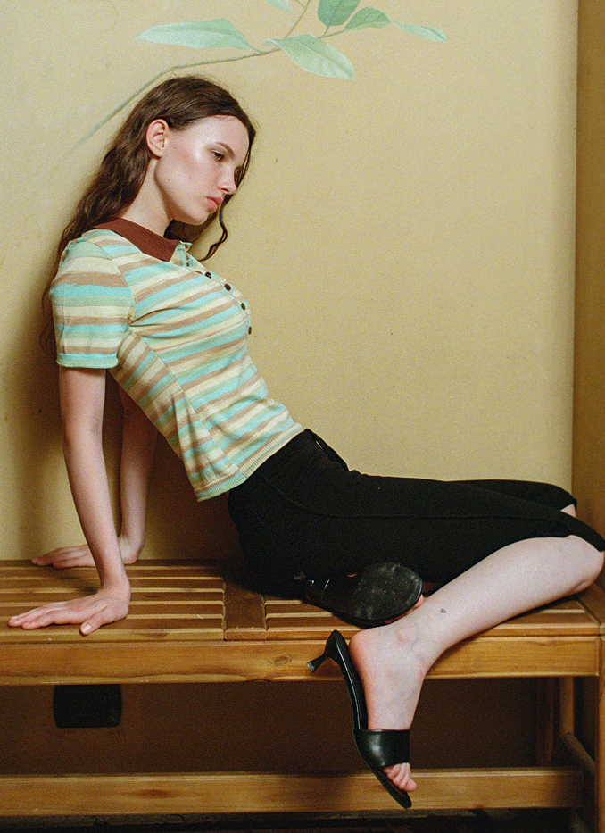 At its heart is our signature spiral knit, where soft spirals trace the curve of the coastline light, textural, and sun-ready. Alongside it, we revisit timeless staples: the lightweight polo with cross-stitch logo detailing, a softly textured knit capri, and the tube top with shell buttons, each a nod to seaside heritage with modern ease. Completing the story, the signature stripe reimagined in a Mini Skirt — a low-slung homage to vintage sailcloth, finished with bold nautical bands that move with you from pier to patio, the kind of piece that catches the wind and pairs effortlessly with everything.